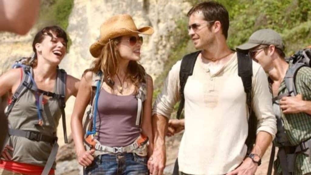 Image Credit: Universal Pictures. In the scenic mountains of Hawaii, a newlywed couple celebrates their marriage with a hiking expedition. But their exciting adventure turns into a fight for survival when they come across a group of hikers who stumbled upon another couple's brutal homicide scene.