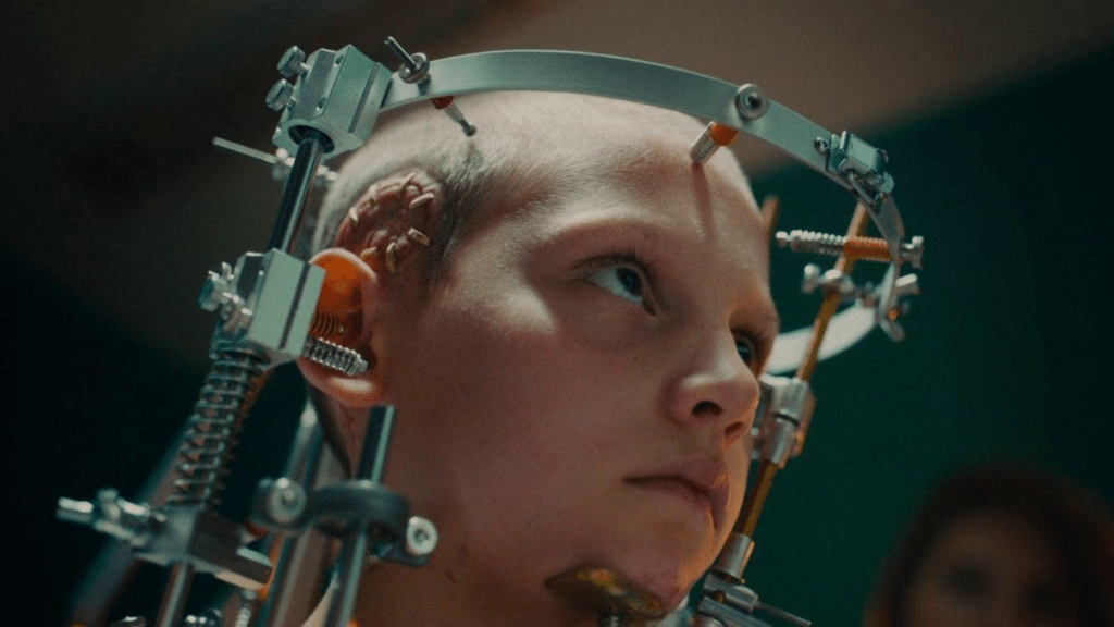 Image Credit: Diaphana Distribution. After a terrible car accident, a young girl is left with a titanium plate holding her skull in place. Years later, the woman works as a stripper, and her violent personality quickly comes to the forefront of her life. She soon hatches a despicable plan of identity fraud and embarks on a terrifying journey that will change her life forever.