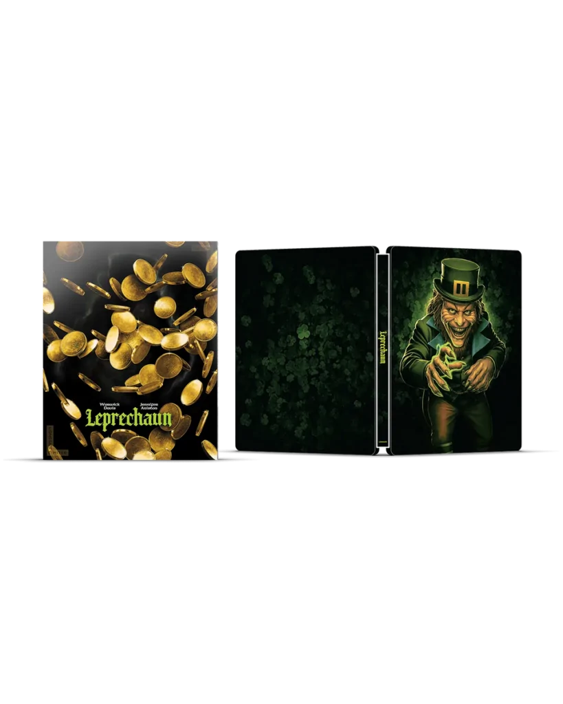 LEPRECHAUN 4K STEELBOOK (Credit: Lionsgate) It wouldn't be St. Patrick's Day withoutย Leprechaun,ย would it? In the horror film that launched an eight-movie franchise, Warwick Davis stars in an iconic role as the titular terrifying fairy, who goes on a vengeful rampage after his precious bag of gold coins is stolen. Using his magical powers to trick, terrorize, and kill anyone unlucky enough to hinder his relentless search, the Leprechaun also sets his sights on Tory (Jennifer Aniston, in her first feature role) as she scrambles to find the only weapon known to kill this ancient monster.