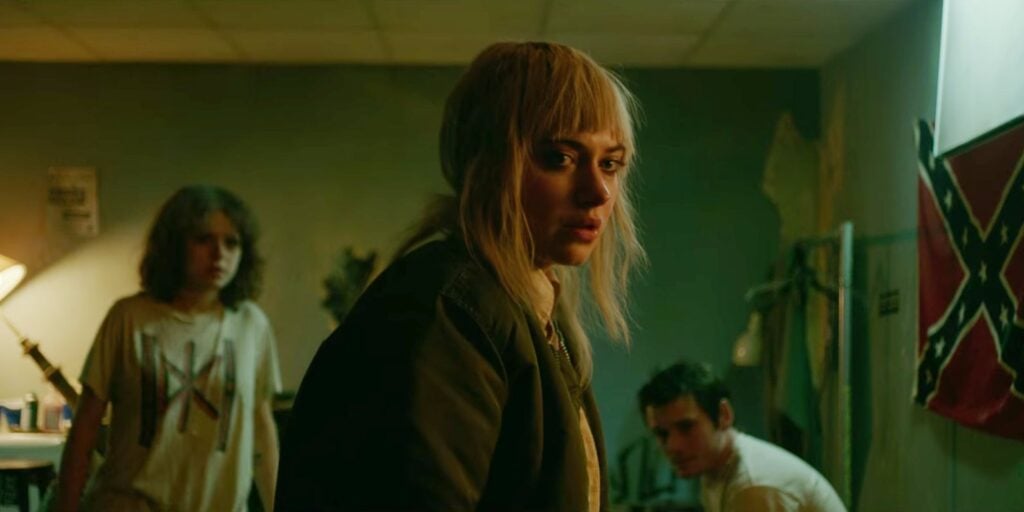 Image Credit: IMDB Green Room, written and directed, is a realistic horror film that contradicts the idea that real life cannot be horror. The story is about a punk band who takes a gig at a remote bar and finds that they are in a dangerous situation, namely, that the bar is run by neo-Nazi skinheads who have just killed someone. Since the group's leader barges into the room, the whole band are witnesses who must be eliminated. Anton Yelchin, Imogen Poots, Alia Shawkat, Joe Cole, Callum Turner, Patrick Stewart, and Macon Blair.
