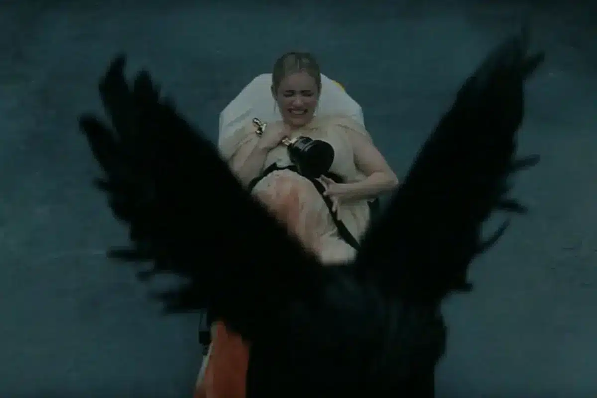 Ilana Glazer in FALSE POSITIVE (2021) AHS: Delicateย begins with Anna undergoing in vitro fertilization (IVF) after struggling to conceive. The process involves plenty of medications and procedures that take a huge emotional and physical toll, the brutality of whichย is thoughtย to be the cause of her apparent hallucinations when stalked by the Delicates.