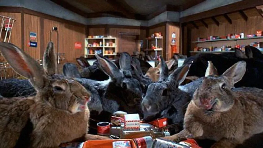 Like most monster movies, Night of the Lepus is more about the crimes of man and the reality that humans are more often than not the true monsters. But it’s still fun to see these bad bunnies tearing through the town and inexplicably eating people.