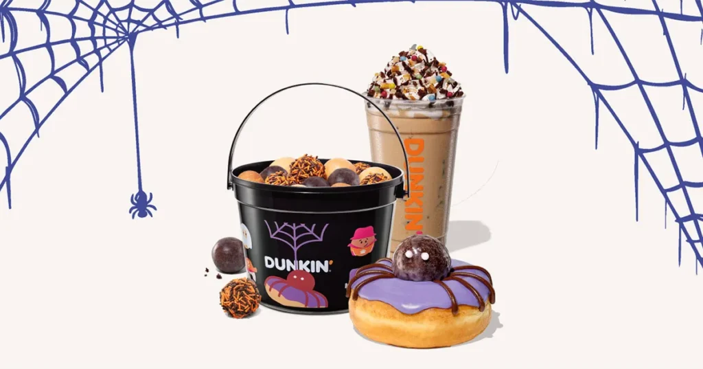 Leading the list is their new Candy Bar Signature Latte, featuring chocolate, toffee, pretzel, and peanut butter flavors paired with rich espresso, and topped with whipped cream, mocha drizzle, and crumbled candy bar pieces, available both in hot or iced variations. Returning to complement the new drink is their fan-favorite Spider Donut, with purple frosting and a glazed chocolate Munchkin donut hole treat, alongside their Halloween Munchkins Bucket, which comes with a festive Spider Donut-inspired bucket filled with a variety of donut hole treats, including chocolate, vanilla, strawberry, and their new sprinkle-covered Halloween Munchkins.ย