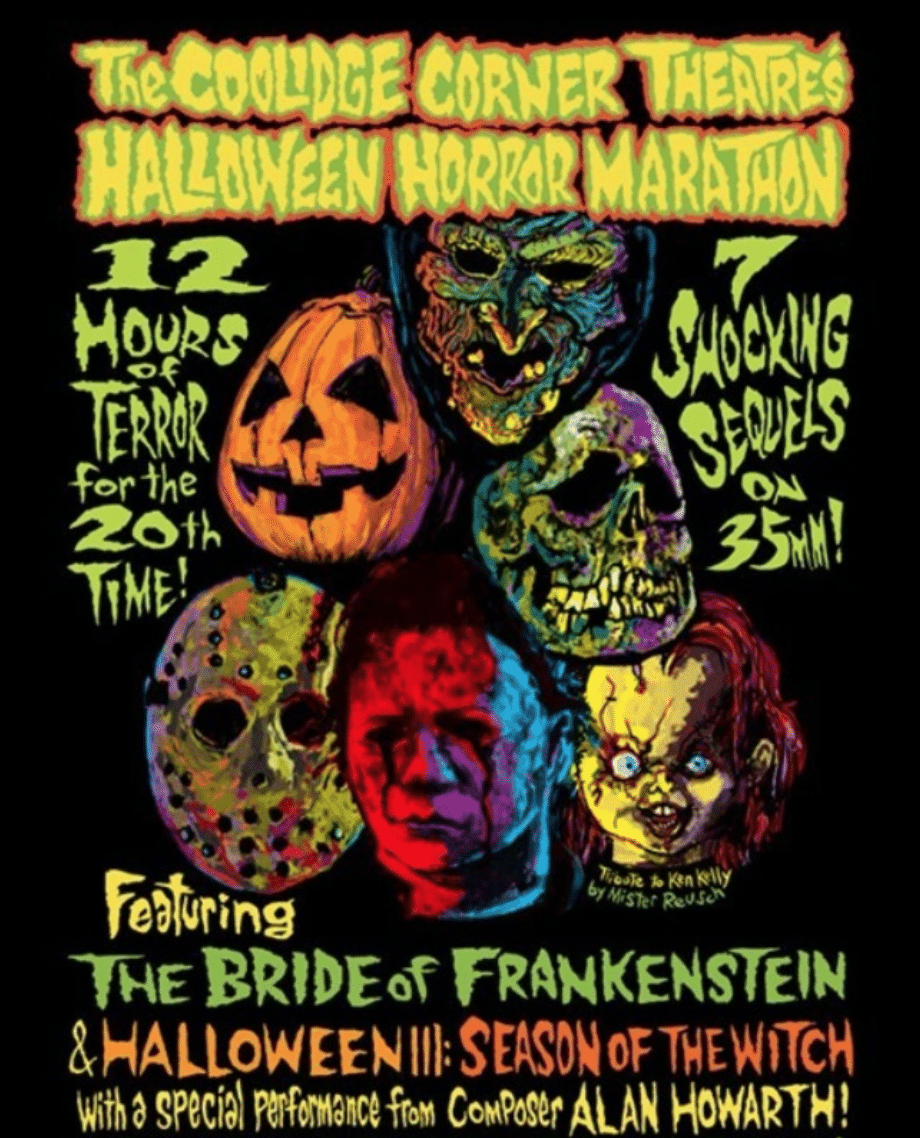 This weekend, Howarth's legend combines with a local Boston legend, the Coolidge Corner Theatre's annual Halloween Horror Marathon, twelve hours of horror movies from 12 AM to 12 PM, curated by Program Manager and Director of Special Programming Mark Anastasio. In its twentieth year, the Horror Marathon honors Howarth's work, kicking things off with Howarth himself in attendance, performing his scores ahead of the night's commencing screening โ€“ Halloween III: Season of the Witch. The Marathon is a one-of-a-kind event made that much more memorable in 2021 by Howarth's participation.
