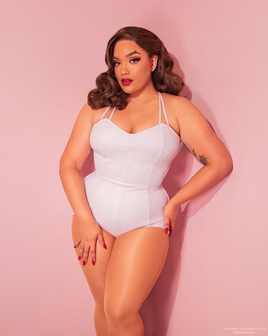 Vixen by Micheline Pitt has collaborated with Universal Products & Experiences to release one of the coolest summer collections we've seen. The Creature From the Black Lagoonย Summer 2024 collection coincides with the film's 70th anniversary. Obvious highlights from the collection include a beautiful reproduction of Julie Adams' iconic white bathing suit and the Creature bag.