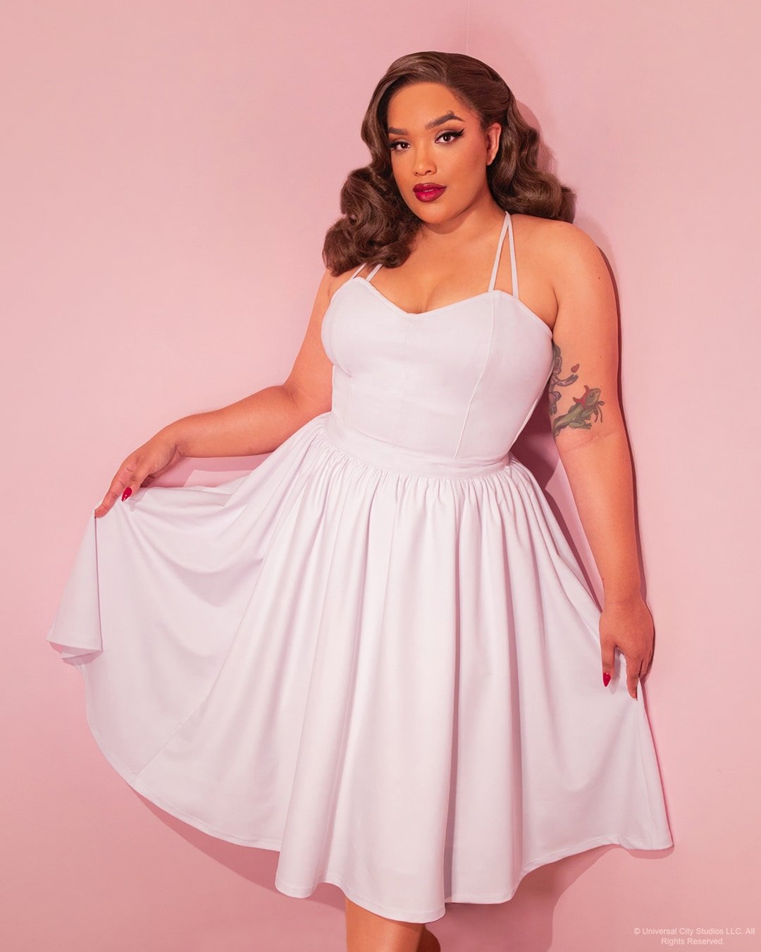 โWhether youโre a devoted fan of vintage horror films or a fashion aficionado, our Creature From the Black Lagoon collection offers a unique fusion of film history and vintage aesthetics with a contemporary design,โ said Vixen CEO & Designer Micheline Pitt of the collaboration, itself a celebration of the seminal 1954 film and the titular creature at its center, famously designed by Budd Westmore and Millicent Patrick. โOur goal was for fans to be able to immerse themselves in the magic of classic cinema with these iconic looks, brought to life for the modern wardrobe.โ