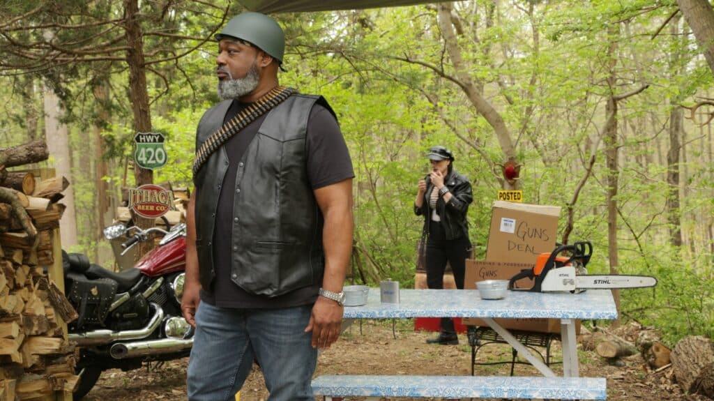 Frankly, it looked like an absolute blast to shoot. That's thanks in large part to his preference for working with friends he's known for years. Josh Bacher, who delivers one of Full Moon Motorpsycho Mafia's most hilarious moments in the form of a bizarre woodland monologue, Passantino calls “one of the funniest guys out there.” His other friend Lou, who plays the hilariously campy-named villain Starpion, helped originate the idea for the script. Like everything Passantino does, this film was a labor of love for the crew, many of whom were shooting alongside full-time jobs.