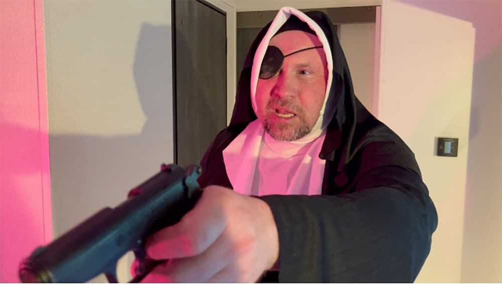 Passantino proudly hails from a time before Google and YouTube were readily available for instant “how to” tutorials, a time when aspiring indie filmmakers just had to “dare.” Armed with a suitcase-sized camcorder, a bunch of props from a post-Halloween sale, and the music he liked, Passantino dedicated himself to learning through trial and error, using guerrilla techniques – “using a wheelchair like Robert Rodriguez did making El Mariachi to create something that was, above all, unapologetically his.