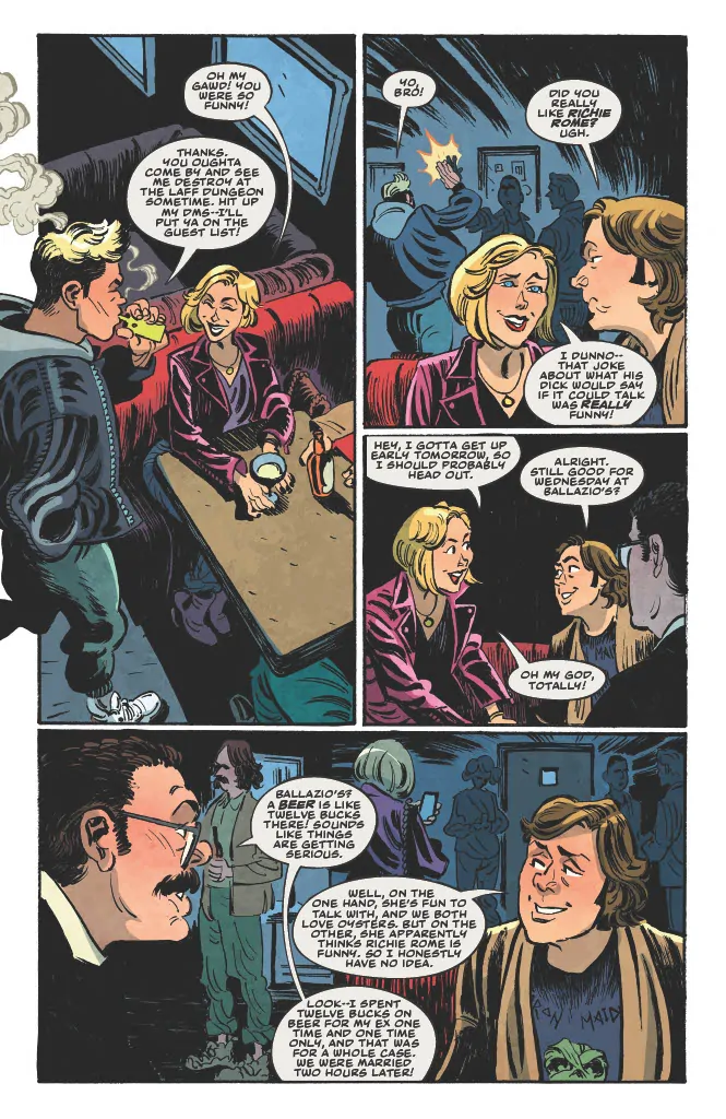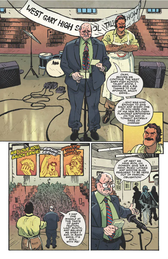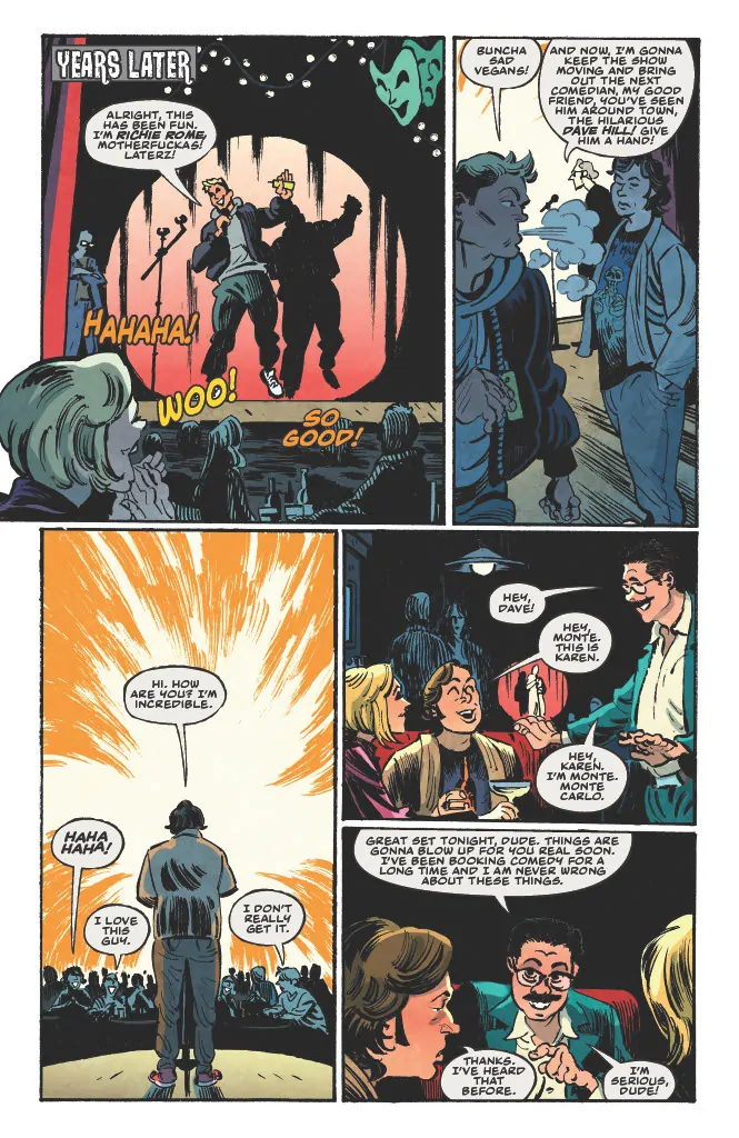 Multi-hyphenate writer-comedian-actor-musician Dave Hill (Tasteful Nudes) and breakout artist Artyom Topilin (I Hate This Place) have a treat for comic readers in the form of Dark Regards, the “shockingly true, terrifyingly hilarious and only modestly exaggerated” tale of how one stand-up comedian almost broke the Internet and started an international incident that almost wiped Gary, Indiana, off the map. Intrigued? You should be, and we've got an exclusive excerpt of the entire first chapter of the graphic novel to celebrate the soft cover officially landing in stores today, March 25.