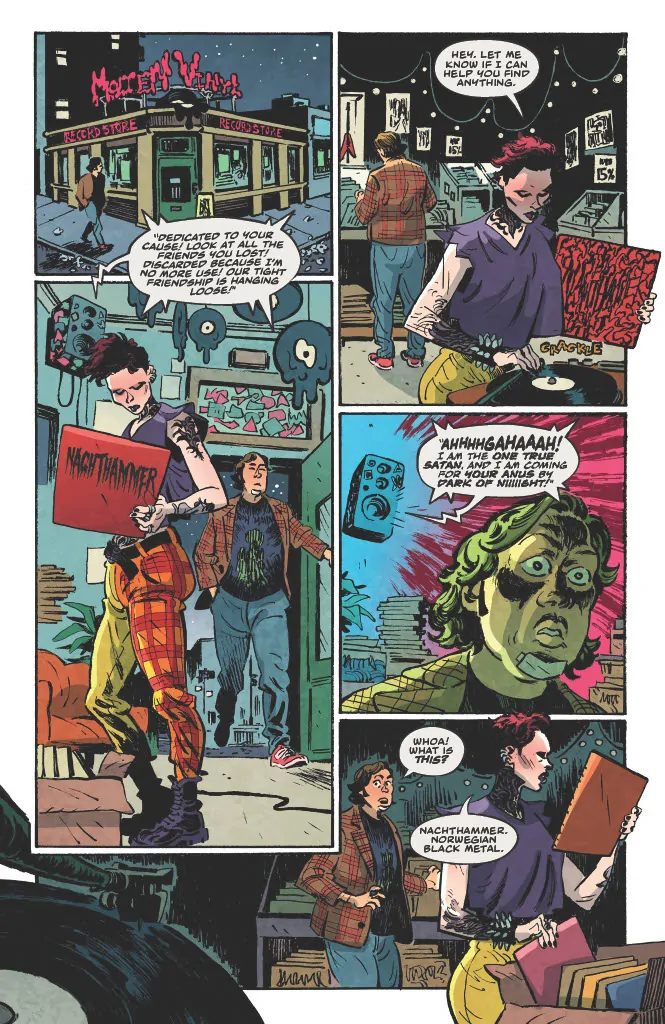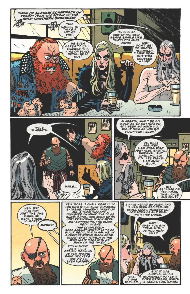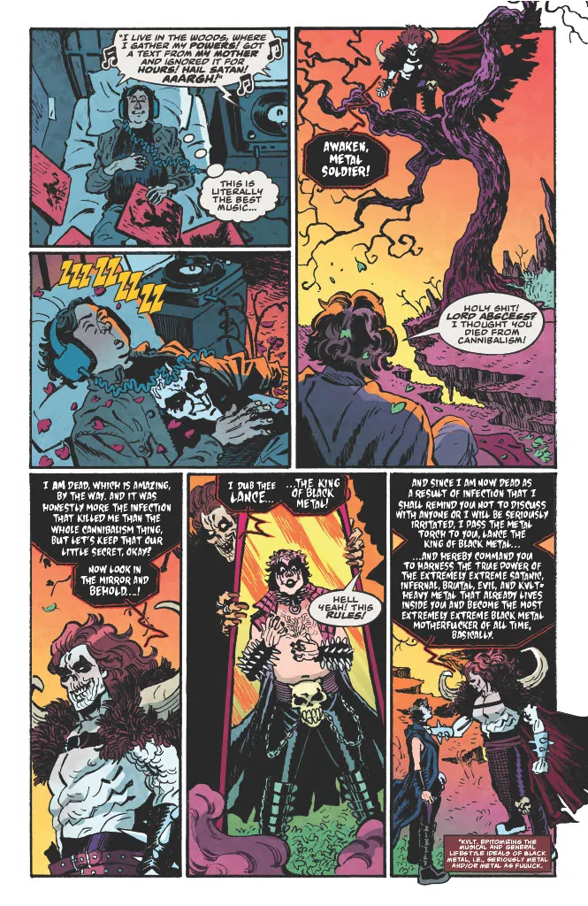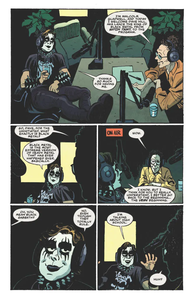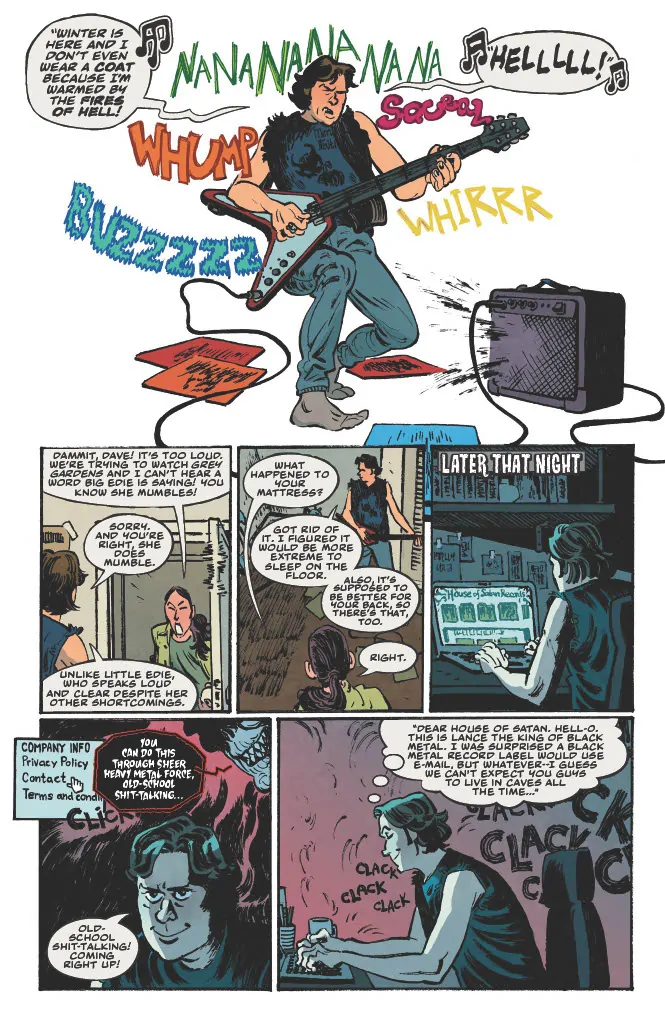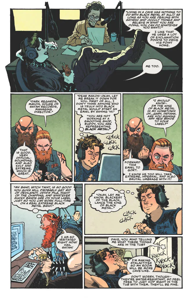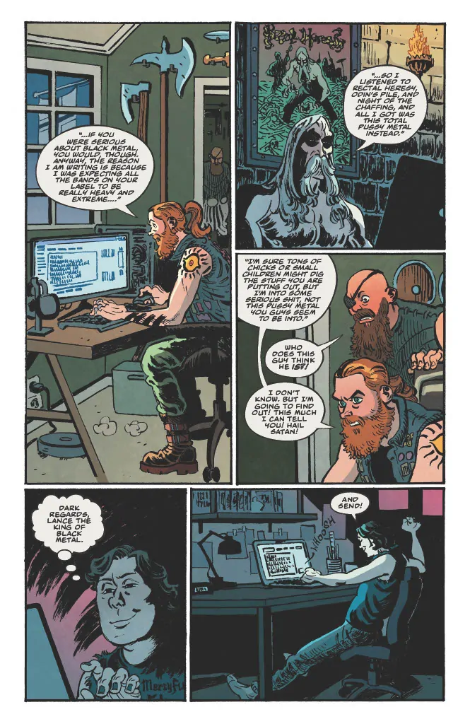 Dark Regards is inspired by Hill's actual email exchanges with a Norwegian black metal record label some years back in which he “pretended to be a teenager named Lance who had an extremely extreme black metal band called Witch Taint while also working at Subway and living with his mother.” Legend.