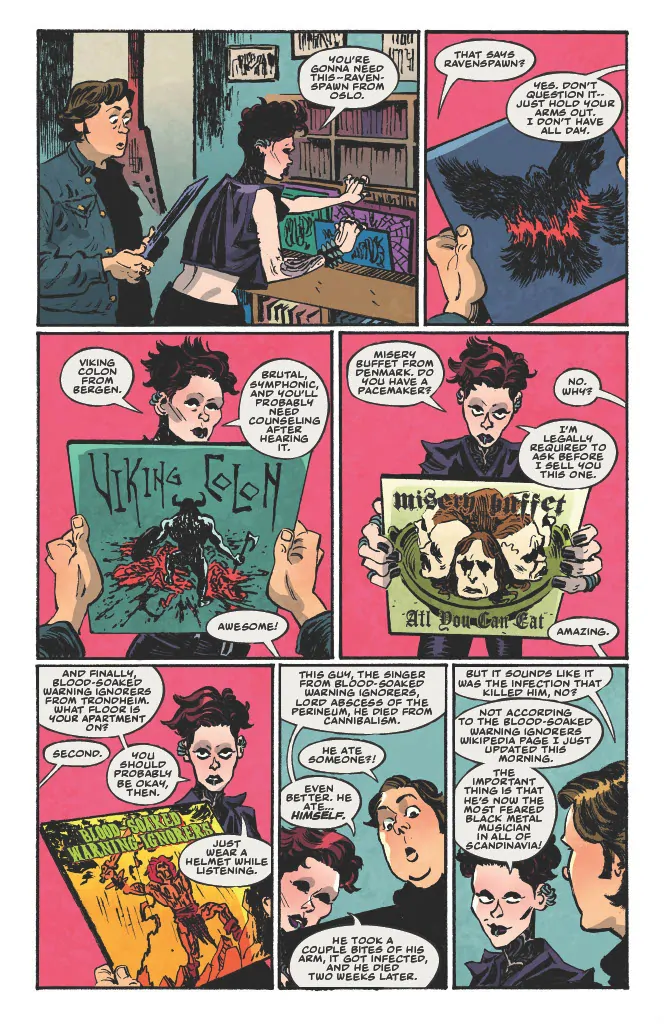 But when Dave’s internet-fueled rumors of Witch Taint—a metal band “so extreme that you must remove all sharp objects from the immediate area” when their music is played—spreads all the way to Europe, his story will spiral dangerously out of control as Norway’s most extreme black metal butchers come to reap their revenge . . . and put everything and everyone Dave holds dear in the crosshairs (of their axes, which, truth be told, don’t actually have crosshairs, but hey, it’s a metaphor).