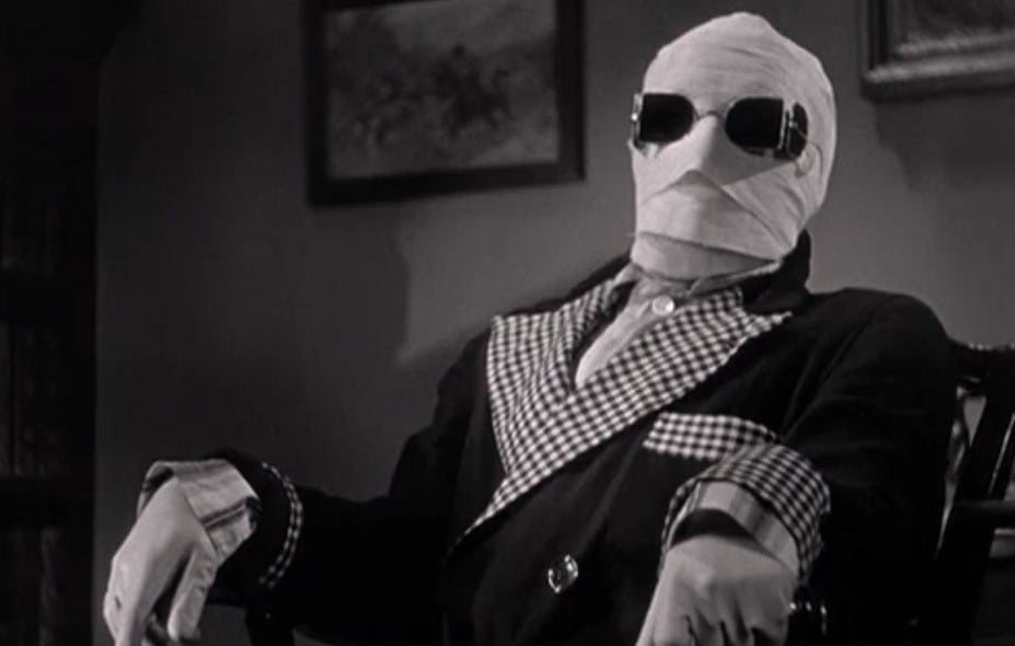 Claude Rains in the 1933 film adaptation of THE INVISIBLE MAN.