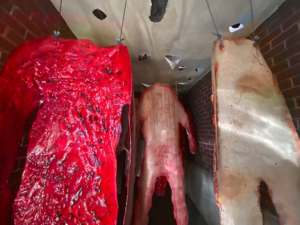 Venturing further into the slaughterhouse, guests will encounter the many different iterations of Leatherface through the various rooms. Murdy researched the meatpacking industryโ€™s history and procedures, crediting Chicago meatpacking houses of the 1860s with creating the first assembly (or disassembly) lines.