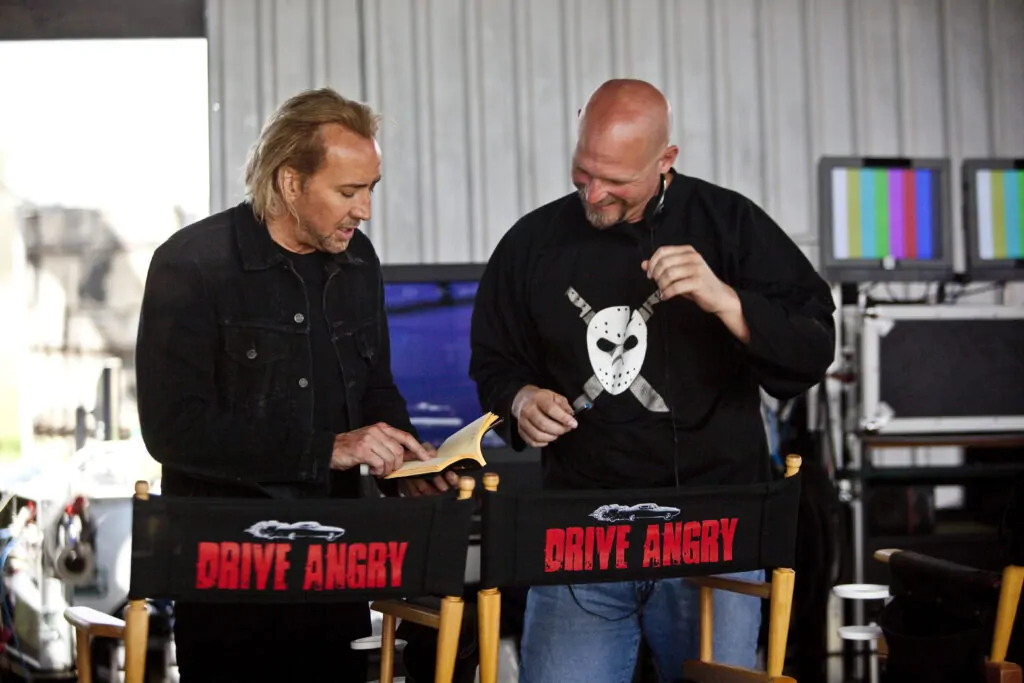Nicolas Cage and Todd Farmer on the set of DRIVE ANGRY (Credit: Todd Farmer)