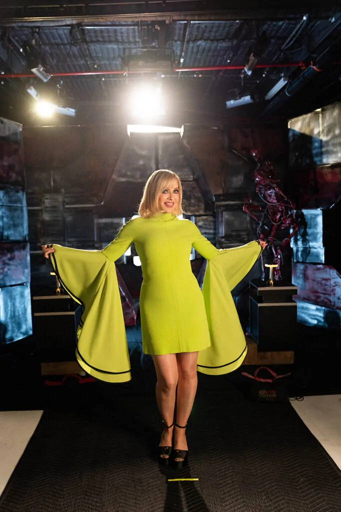 Queen Barbara Crampton serving space fashion realness in RE-ANIMATOR Green (Credit: Nanor Zinzalian)