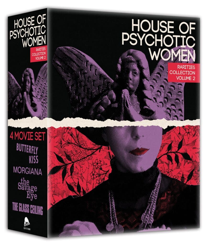 House of Psychotic Women Rarities Collection Volume 2 includes Butterfly Kiss (1995), Morgiana (1972), The Savage Eye (1959) and The Glass Ceiling (1971), all restored from original source elements and with 10+ combined hours of Special Features.