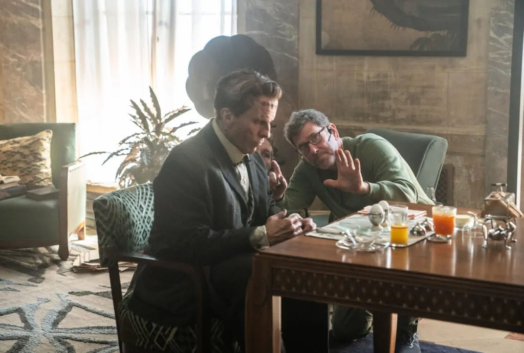 Cinematographer Lawrence Sher and director Maggie Gyllenhaal on the set of THE BRIDE! (Photo by Niko Tavernise)