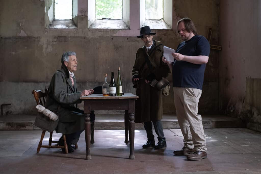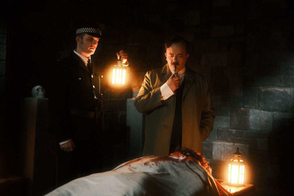The first of four tales in the anthology, this one isย an adaptation of Ambrose Bierce's A Watcher by the Dead. Originally published in 1889, it focuses on some poor soul having to spend the night locked up in a room with a corpse. As one might imagine, things go awry. The photos, which you can check out below, offer a glimpse at what Brewster has cooked up. It was filmed โin a style that evokes the spirit of the golden era of British horror.โ It also features 60's throwback make-up and cinematography inspired by early โ70s Amicus films such as Asylum (1972), The House That Dripped Blood (1971) and Vault of Horror (1973). Brewster had this to say about it:ย