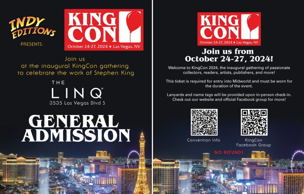 This October, deep in the heart of Randall Flagg country (beautiful Las Vegas, Nevada), a new convention celebrating the work, influence, and ongoing excellence of Stephen King will throw open its doors. The very first KingCon, which is being held at The Linq hotel, will bring together a ton of artists, authors, collectors, special guests, and even FANGORIA's own THE KINGCAST for a weekend filled with awesome panels and more.