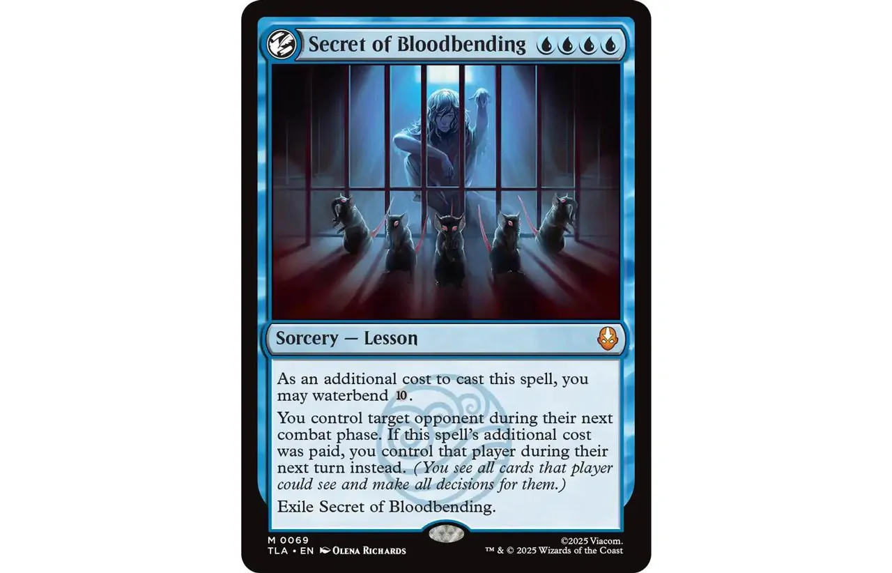 In the Avatar set, we are given two bloodbending cards: Hama, the Bloodbender, an uncommon, and Secret of Bloodbending, a mythic card.