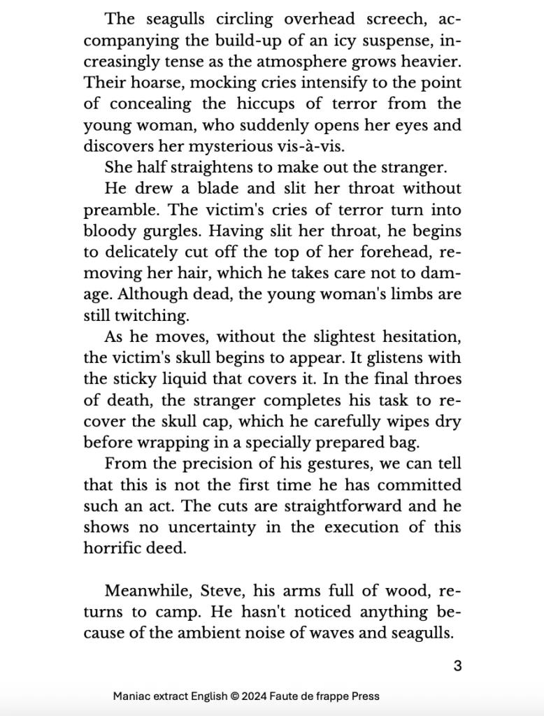 This month, one has arrived all the way from France: Maniac, the first simultaneous publication in English and French by Editions Faute de frappe. The prose translation of William Lustigโs notorious 1981 shocker was written by Stรฉphane Bourgoin and is now available in hardcover, paperback and Kindle via Amazon.com.