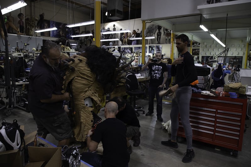 Oh, absolutely, for sure. I mean, as soon as I tried on the skeleton that they were trying to create, that character was so tall so my head was actually where the heart was in the suit. And just to give you an idea for scale, I'm 6'5″, so it was almost two feet over my head. At first, I was like, “Oh, this isn't bad, it's only like 15 pounds.” But then you've got the puppeteers doing the animatronics and everything, and it just kept getting heavier and heavier and heavier, so I had to start training in a different way. I went and I got a 60-pound weight vest and started doing movements training in my backyard, prepping myself for the demands of this character. The weird part about it was that I could only train so much because the character had all this weight in the front of its body. I was constantly trying to arch my back and pull back as this creature would lean forward, which wasn't easy. We ended up coming up with a rigging assist because it ended up being 60 plus pounds in the end.