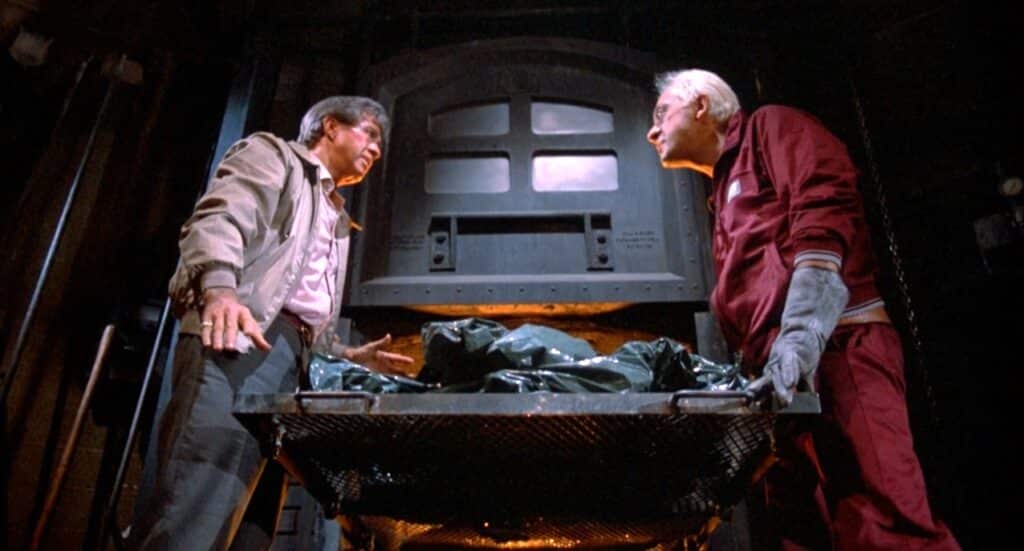 Image Credit: IMDB Not only is there a graveyard, but there's also a mortuary right next to the storage facility: perfect placement and a brilliant idea. The mortuary especially comes in handy when the heroes unwisely choose to cremate one of the seemingly unkillable zombies. Oo, bad idea.