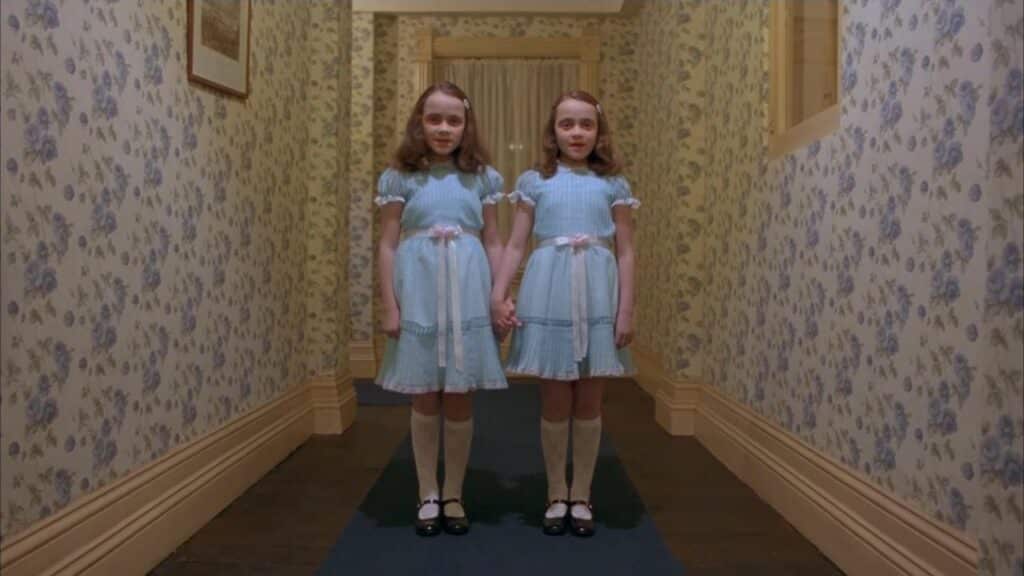 Image Credit: IMDB The Grady Sister's appearance in Stanley Kubrick's adaptation of The Shining has to rank as one of the most iconic images in cinema ever. It's just two young and unsmiling girls standing in a hallway, but Kubrick and the two young twin actresses, Lisa and Louise Burns, make it a heart-stopping moment of terror. They aren't doing anything, but they project such menace and strangeness that you can't tear your eyes away. It's not them; it's the face of the hotel, making it even more frightening.