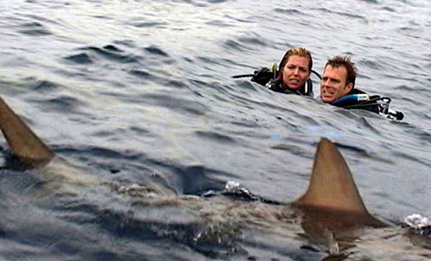 What could have amounted to a stunt (actors in the water with real sharks!) becomes a harrowing viewing experience because Kentis allows us to get to know Daniel and Susan before they take the plunge, and thus we always relate to their dramatic experience, rather than the performersโ. Kentis doesnโt overburden them with too much โcharacterization,โ either; theyโre just a pair of likable, overworked folks who, as the movie opens, have been in desperate need of a vacation for a while. Their reactions to their plight are basic and human as they alternate between clinging to each other, succumbing to panic and inevitably blaming each other for the dire straits theyโre in. Neither one ever loses sympathy, and while it couldnโt have been hard for Ryan and Travis to feign terror while bobbing amongst the carnivorous fish, their reactions remain in character throughout.