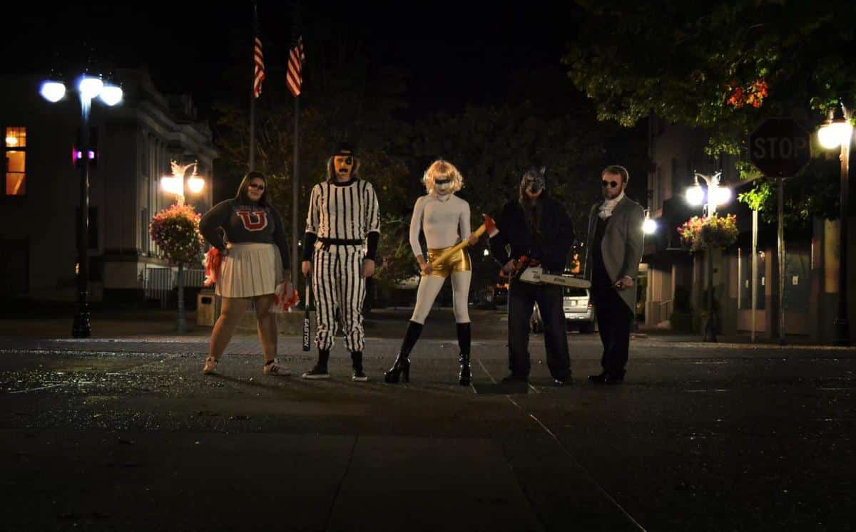 The premise is simple in the best indie-filmmaking manner: Chris (Chris Sharp), who lives alone and has what can only be described as a passive-aggressive relationship with his cat, has nothing to do on Halloween night but a planned evening of watching cheesy horror flicks. But while walking the streets, he comes upon a strange black invitation to a โmurder partyโ in Brooklyn, and decides to suit up in a homemade knightโs costume and check it out. Had he watched enough of those B-chillers, he might have known what to expect: The shindig is being held by a bunch of attitudinal art students who want to capture a slaying on camera, and Chris is the only person foolish enough to have responded to their randomly strewn invites. He winds up bound to a chair as the group (themselves done up as characters from The Warriors, Blade Runner, etc.) await the arrival of their guru, Alexander (Sandy Barnett), but Chris does have a bit of luck on his side. This bunch are so full of themselves and empty of real smarts that they might just wind up dispatching each other before they get around to their intended victim.