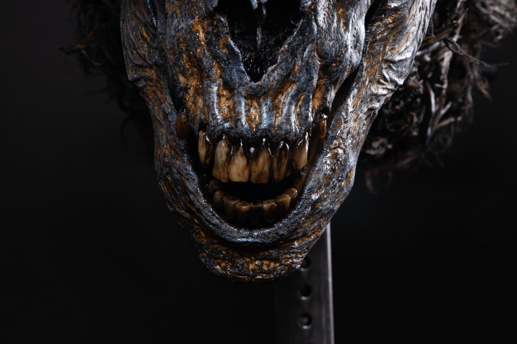 “One thing that happened during the process was that we got rid of the eyes. The eyes were becoming a problem, so we went with an eyeless face which I think works really well. At one point, Guillermo asked for a tube in the creature so that steam could come out of its nose. Then, I made really strong dark coffee, and that made it look like the creature was just dripping rust, motor oil, and steam everywhere. One of the other things that I really liked that Guy created was in the fur of the creature's neck; he incorporated all these five-inch-long miniatures of antlers. It makes no sense whatsoever, but because the Wendigo is a mythical beast, it doesn't have to make sense. But I do think when you take all these elements and incorporate them into the one design, the Wendigo turned out quite beautiful in the end.”