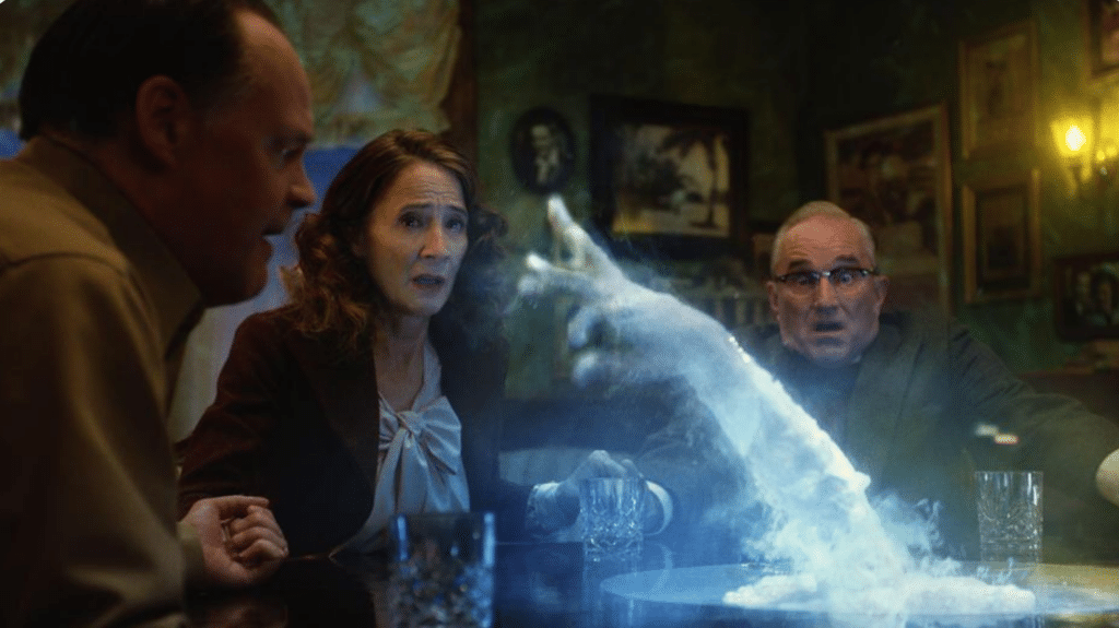 Ted Geoghegan's WWI era sรฉance movie explores the horrors of war from within a Brooklyn apartment building. It's Friday, December 27, 1945 and five military veterans have gathered in the ornate parlour of a Brooklyn brownstone. Best friends since childhood, theyโve reunited to support their troubled hostโbut when his invitation for cocktails turns into an impromptu sรฉance, the metaphoric ghosts of their past become all too literal. Trapped in their hostโs lounge, the Greatest Generation now finds themselves put to one final test, with their only route to freedom being more bloodshed.