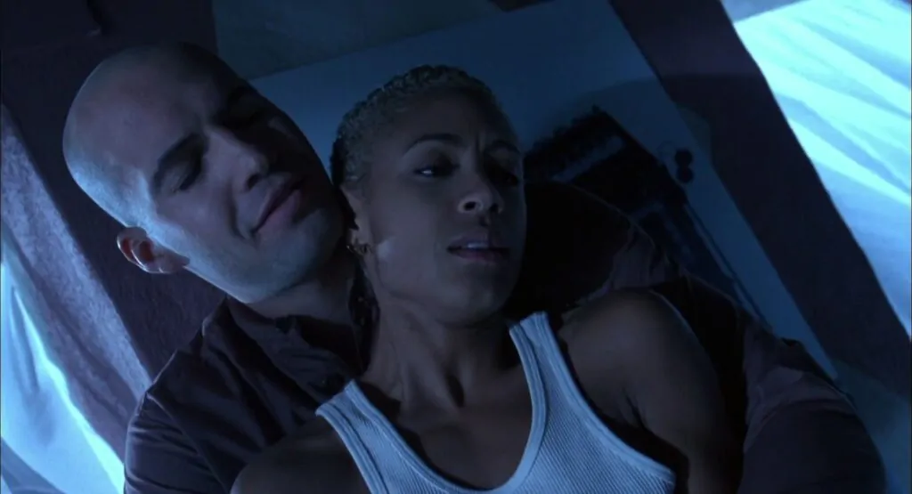 That said, the bulk of the story changes in Randall Boyll's take are pretty minor, and most fall within the movie's third act. One exception is that the character of Jeryline, played by Pinkett in one of her first lead roles, is written as white, and also has a burgeoning romance with Brayker (Sadler). Again, maybe this was present in earlier drafts and removed, but considering the 20+ year difference between the two actors that were hired, I'm glad there's nothing like it in the movie.