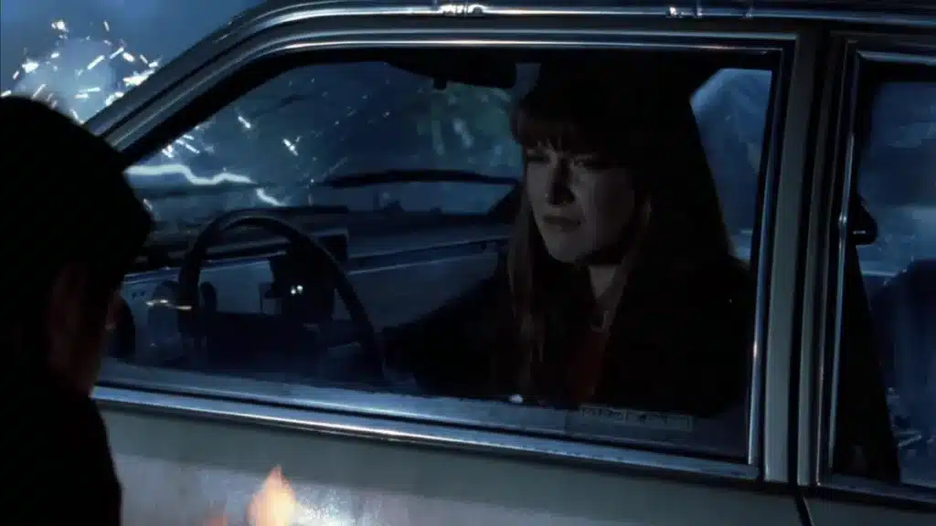 Image Credit: MGM. Inย Jeepers Creepers 3, Kirk Mathers and Addison Brandon awoke in the Creeper's truck after being abducted. While Kirk attempted to escape, he accidentally activated a booby trap, causing a metal pipe to impale his skull.