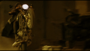 Most of the other changes in the novelization are, perhaps, Williamsonโs invention. Goyerโs script is available online, and most of the things in the book that arenโt in the movie are also reflected there. Outside of internal thoughts (more on those soon), the only other additions of note that donโt seem to originate with Goyer are a pair of observers during the climactic Day of the Dead sequence, watching Judah torture and hang Ashe while assuming that itโs all a staged stunt show (โThis stunt guy is really good!โ one of them thinks as Judah breaks Asheโs fingers), and an extra little bit of action when Ashe is climbing Judahโs tower, as a pair of Judahโs anonymous goons attempt to stop him by climbing after him.ย