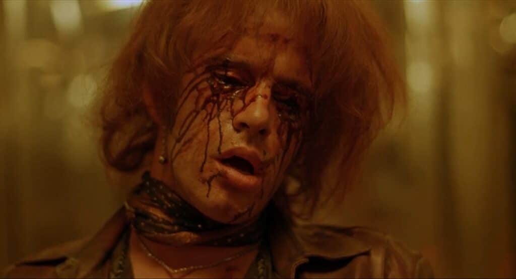 As it should have played out, after killing the poor coworker, Curve and Kali trash the office until they find some business papers with Sarahโs address. But at this point, the tattoo of a crow on Curveโs chest (a recurring plot point that is barely glimpsed in the theatrical cut) starts to bleed, which is why he suddenly freaks out and leaves. Why they would leave in his reaction without the setup is a mystery only the Weinsteins can answer, but they have other things to worry about now.