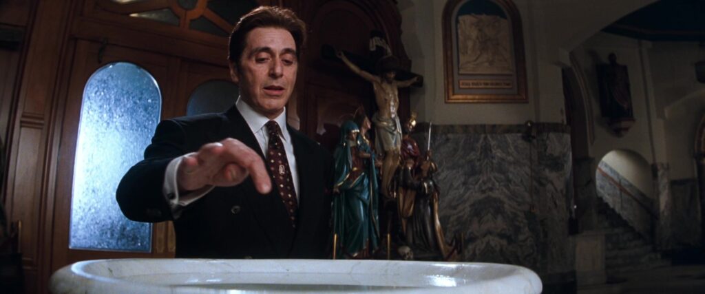Image Credit: IMDB Al Pacino's turn as Satan is in “The Devil's Advocate” as the character John Milton. He appears as a seducer who attempts to capture the essential goodness of Kevin Lomax, played by Keanu Reeves, and his wife, Mary Anne, played by Charlize Theron. In one memorable scene, Milton enters a church and puts his finger in holy water to make it boil. In the film, Satan does walk the Earth, tempting the children he has had with human women to come over to his side to create the Antichrist. It seems a little complicated, but that is the plan.