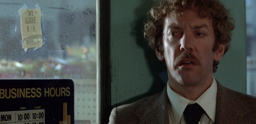 Image Credit: IMDB Donald Sutherland (Matthew Bennell) and Brooke Adams (Elizabeth Driscoll) fight valiantly to avoid being absorbed by the pods throughout the film. The moment Elizabeth falls asleep too long while Matthew is away and her body disintegrates in her arms is sorrowful. When Miles cradles her body as it disappears and cries, you can't help but be moved. You know that he's been dealt a blow that goes right to his heart.