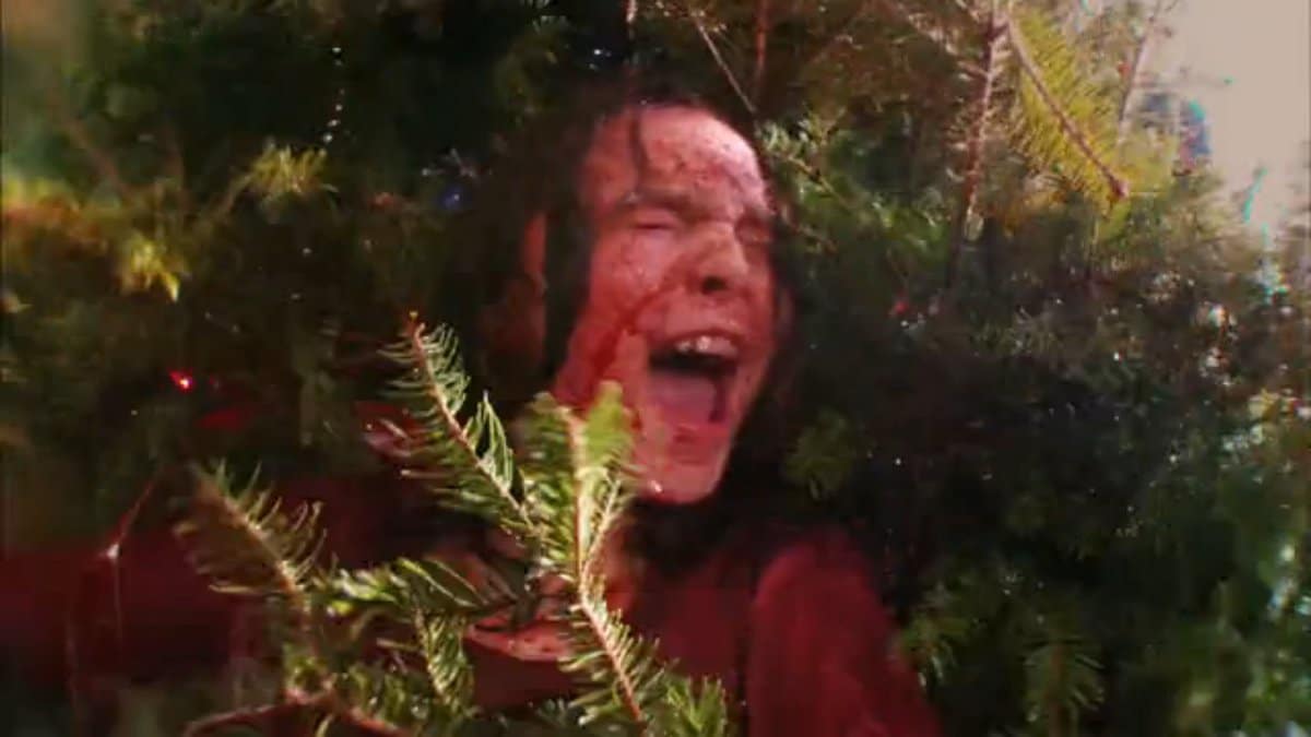 While the filmmakers were unaware of Michael Plekaitisโ similarly themed low-budget Trees features before embarking on this project, Cotterill does note the influence of a pair of past holiday flight flicksโone fairly obvious, the other less so. โJason and I are huge genre fans,โ he says, โand he would come to my house every couple of nights with a new batch of Christmas horror movies. Our biggest inspiration on Treevenge was Gremlinsโitโs got that same kind of feel, itโs fun, crazy and wacky with these creatures rampaging on the streets. Even the soundtrack of our movie [is similar] in that last song that comes into play; itโs like a carnival of chaos. And one of the most vital things for Jason was to recreate that super-wide-angle killerโs point of view in Black Christmasโnot the remake, but the Bob Clark masterpiece. So we managed to score this insane wide-angle lens for our film, and decided that would be the Christmas treesโ point of view. Then when we were shooting, Jason was like, โScrew it! I want to use it more!โ So youโll see it throughout the movie.โ