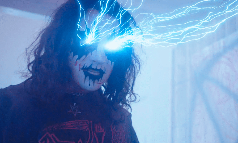 At the start of Deathgasm, Brodie (Milo Cawthorne) has just moved to a new town, after his meth-freak mom got busted while trying to fellate a Santa in a crowded mall (so itโs a Xmas movie!). Staying with his ultra-religious aunt and uncle, Brodie finds little better to do than hang with D&D nerds, until he discovers Alien Records, purveyors of sick metal, where he meets his brother in steel, Zakk (James Blake). Brodie also notices the prettiest girl at school, Medina (Kimberley Crossman), who is dating his jock cousin. Brodie and Zakk form the band Deathgasm, and by playing some music left behind by their vanished metal idol, inadvertently bring forth a demonic force known as The Blind One, thus plunging their world into demented bloody chaos. Can the rockers survive, and avert the end of the world? Can Brodie get the girl? Can the girl whup hot demon ass?