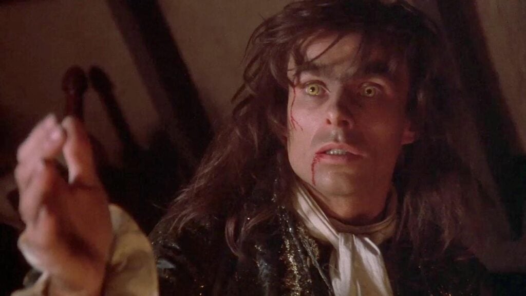 Image Credit: Columbia Pictures Okay, you are thinking, “Wait a minute, Fright Night is a movie about vampires. What gives?” In the film, written and directed by Tom Holland, the character of Evil Ed turns into a wolf, showing one of the less acknowledged powers of the vampire, shape-shifting. Stephen Geoffrey, who plays Evil Ed, spent 18 hours in make-up for the werewolf transformation and death scene. Richard Edlund was head of make-up effects, and artist Mark Bryan Wilson worked on that specific make-up transformation. The difference between this scene and nearly all other werewolf transformations is that Evil Ed instantly turns into an actual wolf off-camera. The change takes place after vampire hunter Peter Vincent mortally wounds him. He slowly and pitifully transforms back into his more human form. It is not only a terrific reverse transformation; Stephen Geoffrey's performance makes the scene an emotional highlight of the film. It is similar to the final change of Lon Chaney in The Wolf Man. Fangoria Issue number 47 has an excellent article for the original release of Fright Night. in their internet archive.
