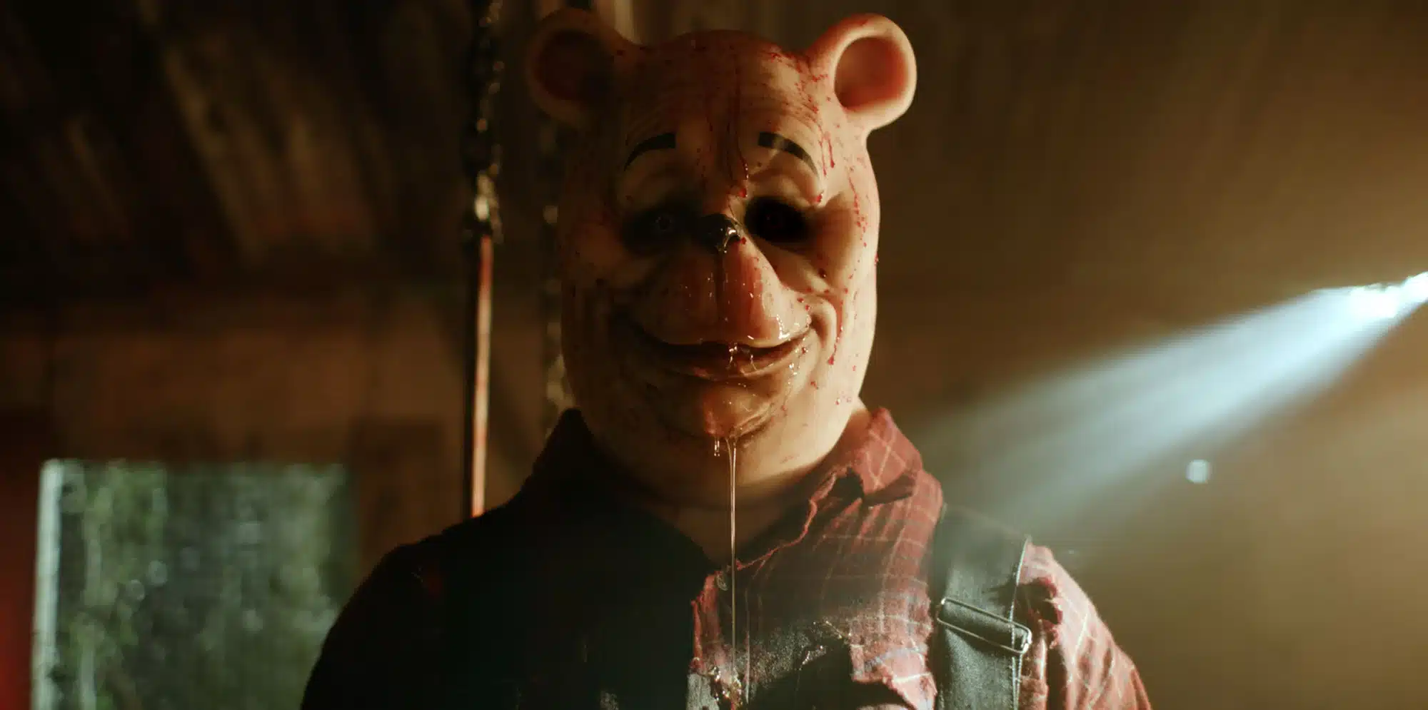 Christopher, unaware of everything which has happened, gets engaged. But she's not convinced by these stories, which no one would be. If someone was like, “Oh, I met this half-man, half-bear,” you'd be like, “No, no, you didn't.” He wants to convince her. So he takes her with him back to the Hundred Acre Wood where he eventually comes across them, and then all hell breaks loose. Pooh and friends come back in contact with Christopher, which triggers them, and they start this rampage. That rampage leads to the film's core cast, who go to a rural cabin for a bit of a break from the city and disconnect from social media. While they wanted this peaceful weekend, they then have a half-bear and half-pig turn up โ Pooh and Piglet โ and just get absolutely destroyed. And then it becomes a bit of a home invasion story, kind of like The Strangers and Halloween vibes.